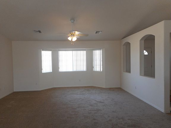 Live Fort Mohave AZ ~ Turn key home on over 2 acres in desirable Le Clair community perfect for all your entertaining needs. This 3 bed 3 bath 2158 sq ft home features Ceiling fans throughout, pot shelves, vaulted ceilings, open floor plan, plenty of storage closets throughout, split bedrooms, breakfast bar along with both formal and casual dining areas. Spacious Kitchen has beautiful granite counter tops, and NEW appliances. 2 master bedrooms with their own private entrances, and a guest bedroom. One master features his and her closets, shower/tub combo and double sinks. 2nd Master is handicapped accessible and has a single sink that is set lower, walkin shower with built in support rails, grab bar, and has it's own patio access. Guest bedroom has sliding door to back patio. Home has 2 2 car garages, it's own private well along with 2 plus acres for plenty of room for all your toys or add a pool and make it your own private oasis.