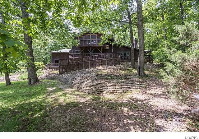 Unique, custom cedar home on 1.26 acres; surrounded by trees, privacy, & nature. 4 Bedrooms, 4 car heated oversized garage. New neutral carpet. Stone fireplace in living rm flanked by custom built-in bookcases w/hidden compartment for wood storage. Wood floor Dining Room. Custom kitchen with solid counters. Family rm, den, one BR & full bath also on Main Lvl. Master BR has private screened balcony w/skylight. Luxury bath with Jacuzzi soaking tub and separate shower. Bonus rm above garage is accessible through home for potential 5th BR, or outside entrance makes it perfect for a home office! Wheelchair access to front door. Extensive landscaping with stacked rock walls creates large planter beds filled with mature perennial plants & flowers. Steps from the Katy Trail, this home is close-in to amenities & hwys but has the feeling of a secluded retreat. If you are looking for a year round vacation home with character, this could be love at first sight!