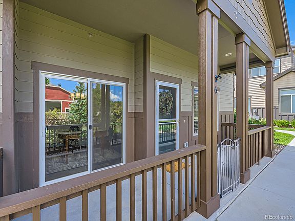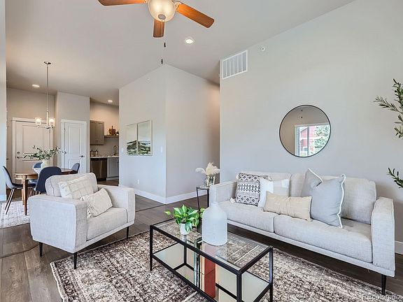 Desirable ranch style end unit condo featuring a modern open floor plan, two primary bedrooms, an oversized private covered patio and two car garage. This open, bright and stunning end unit includes 3 bedrooms and 3 full bathrooms with all the upgrades: gas fireplace, modern laminate flooring and high ceilings. Enjoy the primary bedroom on the main floor with ensuite bathroom and walk-in closet, as well as a guest bedroom and access to a full bathroom. A bonus second primary bedroom resides on the top floor with another walk-in closet and ensuite bathroom. An unfinished basement provides a clean slate with all the possibilities to expand your living space. Right next to the clubhouse, homeowners enjoy access to a pool, exercise room and sauna. Take your adventures outside in the summer and enjoy the common area parks or nearby frisbee golf and Mountain Vista Greens golf course. Don't miss the opportunity to call this community your home with this private and spacious property.