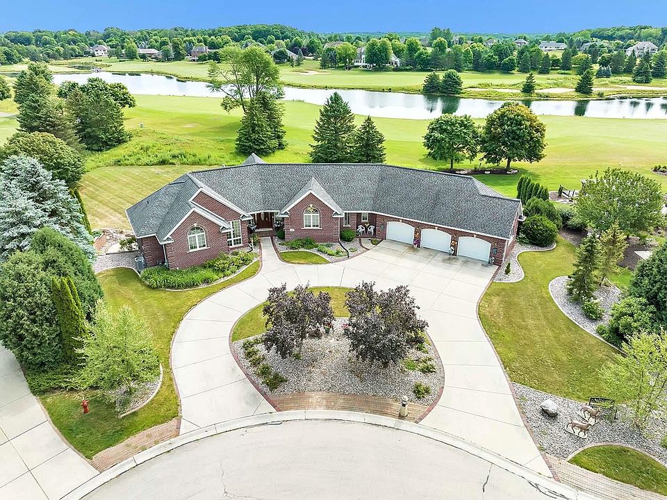 Sprawling Thornberry Creek estate. Quiet Cul-de-sac location bordering the 9th hole of the golf course offering spectacular views of the 7th, 8th & 9th holes + tranquil pond. Open concept great room w/soaring ceiling, wall of windows & cozy fireplace. In-floor heat throughout both levels. Applianced kitchen w/maple cabinets, granite countertops, center island w/snack counter, walk-in pantry, dual dishwashers & adjoining dining area w/door to relaxing, expansive upper deck . Primary bedroom offers lighted tray ceiling, walk-in closet & private full bath w/jetted tub, dual sinks & step-in tile shower w/dual showerheads. Full lower level w/finished family room w/fireplace & doors to patio, theater room, game room, 2 bedrooms & 2 full baths. 3 car attached garage. HOA fee is voluntary