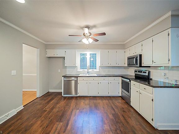 4 bedroom, 3 bathroom stunner in Winston Salem! The impeccable kitchen has beautiful cabinets and stainless steel appliances. Flow into the living room featuring a cozy fireplace, perfect for entertaining. The primary bedroom features plush carpet, a spacious closet, and a private bathroom. Lush green landscape surrounds this beautiful house. Hurry, this won’t last long!