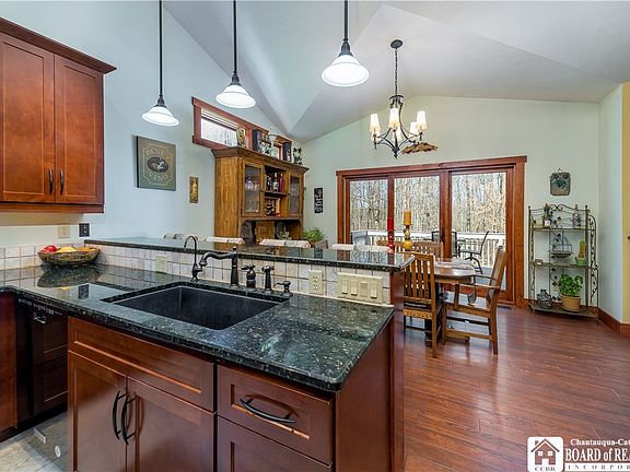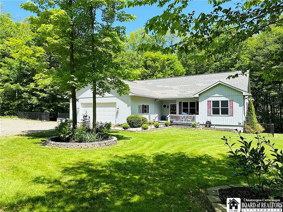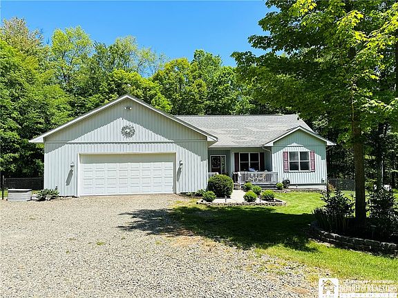 Highly desired home in a private, country setting on over 12 acres located in Southwestern School District! This ranch style home includes 3 bedrooms and 2.5 bathrooms with an additional bonus room and half bath on the lower level. Modern chef's kitchen with granite counter tops, an island, above and below cabinet lighting and a breakfast bar. The living room boasts 13' vaulted ceilings with a floor to ceiling stone fireplace For added convenience, there is a first floor primary suite with a spacious walk-in closet and a master bath that has a tiled shower and soaking tub with heated floors. Two additional bedrooms with a shared modern bath. Additional amenities include: first floor laundry with a half bathroom, an attached 2.5 car garage, partially fenced in yard, and a full walk out basement that has been completely finished! Host Summer BBQ's and entertain in the fully finished basement featuring a bar with granite countertops, a full island with plenty of seating, fridge, den with built-in tv's, bonus room, gym and more! Viewings by appointment only to preapproved buyers.