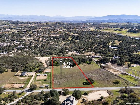 Nestled within the serene landscapes of La Cresta Highlands POA, the vacant lot at 41560 De Anna Ranch Road in Murrieta presents an unparalleled opportunity to build your dream home on 4.79 acres of picturesque land. This exquisite parcel offers a mostly flat terrain with a row of ancient oak trees lining the base of a slight elevation towards the back, creating a perfect canvas for a home with majestic views overlooking the lot and the surrounding countryside. The beauty of this lot is enhanced by its direct access to an equestrian trail that runs gracefully along one side and the back of the property, connecting to miles of trails ideal for horseback riding, hiking, or leisurely walks in nature. This feature alone makes it a coveted spot for those who cherish outdoor activities and the equestrian lifestyle. Additionally, with water, electric, and phone lines readily available on De Anna Ranch, and essential groundwork such as grading plans and a percolation test already completed, the lot is primed and almost ready for the construction of your dream residence. One of the most compelling aspects of this property is its versatility. The spacious and mostly flat terrain offers ample room for not just a custom home but also a barn, RV garage, or other outbuildings to suit your lifestyle needs. Whether you dream of a sprawling estate with a backyard oasis or a cozy retreat with room for your hobbies and passions, this lot is a blank slate ready to bring your vision to life. Located on a quiet, paved street, this property offers the perfect balance of peaceful country living and convenience. Just a short drive from Interstate 15, residents will find themselves within easy reach of fine dining, shopping, and the enchanting Temecula Wine Country. Moreover, the unique positioning in the foothills between Orange County and Murrieta Valley ensures cool coastal breezes that temper the warm California sun, creating an idyllic climate year-round, perfect for a vineyard! Imagine building your dream home at 41560 De Anna Ranch Road, where every day is a blend of country charm and luxury living, all while being conveniently within an hour’s drive to the coast, mountains and desert. This is more than just land; it's the foundation for your future, wrapped in the beauty of Murrieta and awaiting your personal touch.
