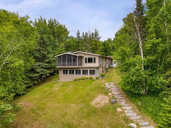 Rare opportunity to get on beautiful Turtle Lake with very gradual elevation to the waters edge. This 3 Bedroom, 3 bath home is ready for year round living on one of northern MN premier lakes. Walk in to the nice sized mud room and laundry on the main floor. The nicely updated kitchen/ dining, and living room lead to gorgeous views of the lake. Master bedroom with a large walk in closet and master bath. In the lower level is 2 bedrooms, nice sized family room, wet bar, 3 season porch with built in charcoal grill, and sauna. Home is equipped with Smart Home Devices. Oodles of storage with the attached garage, detached garage, and large Morton building. Also a sweet boat house sitting at waters edge! Check out the virtual tour with drone footage to get an exceptional feel for this property!