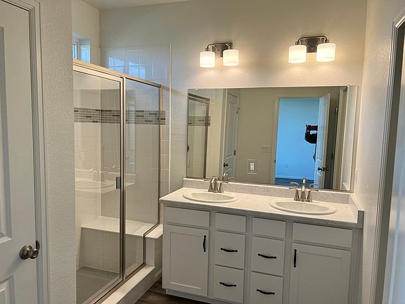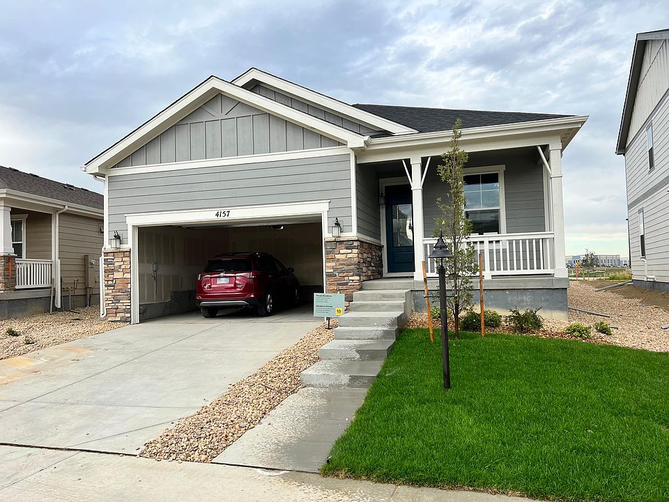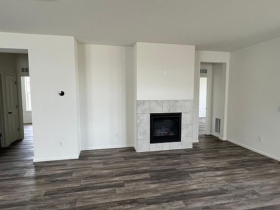 This is a brand new home that no one had lived in before. It is located in the Lakes Community of Loveland. This is a planned community with schools, a community center, and a swimming pool. The house has many upgrades such as 9-foot ceilings, a covered patio, air conditioning, deluxe appliances, laminated hardwood floors throughout, and upgrades on all the kitchen and bathroom cupboards. The primary bedroom has a large walk-in closet. The primary bath has two large linen closets. The laundry room also has and washer and dryer. The two-car garage includes a plug-in for an electric vehicle. The two smaller bedrooms share a bathroom with a deep tub. The community is located four miles from a huge shopping area and many fine restaurants. It is a 10-minute drive to I-25. Smoking is not permitted anywhere on the property. There is a two-car garage and a place for two cars on the driveway. A dog would be negotiable with a pet deposit. The landscape would be the responsibility of the renter.