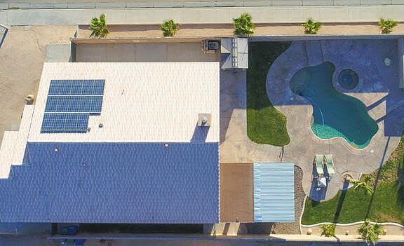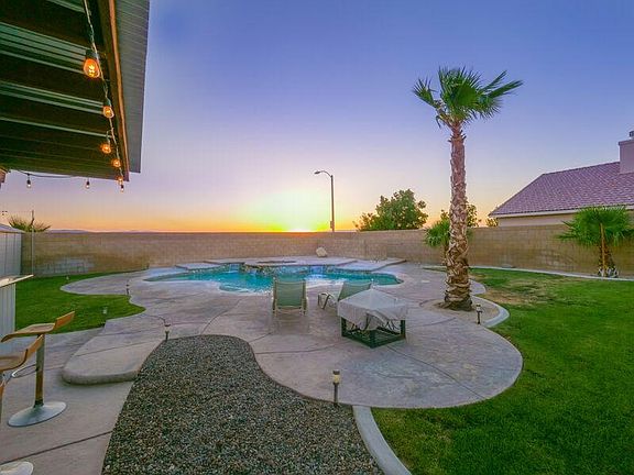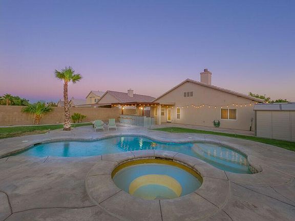 Stunning Westside Desert Oasis Single Story Pool Home on a Private Corner Lot. This Gorgeous 4 Bedroom, 2 Bath, 1,947 square foot Home features a Spacious Open Floor Plan. The Backyard is an Entertainers Dream with a Custom Cabana with all the utilities and is the perfect place for year round BBQs. Kegerator included. Lots of Privacy in the backyard with tall Block Walls, a combination of concrete & grass and Palm Trees. A Large Family Room greets you as you enter. The Kitchen opens up to the Family Room with a Cozy Fireplace and is Great for Entertaining. The Kitchen features Stainless Steel Appliances, Granite Countertops, Breakfast Bar and Lots of Storage Space. The Master Retreat includes a Walk-in Closet and the Bath has a separate tub and shower with personal his and her sinks.