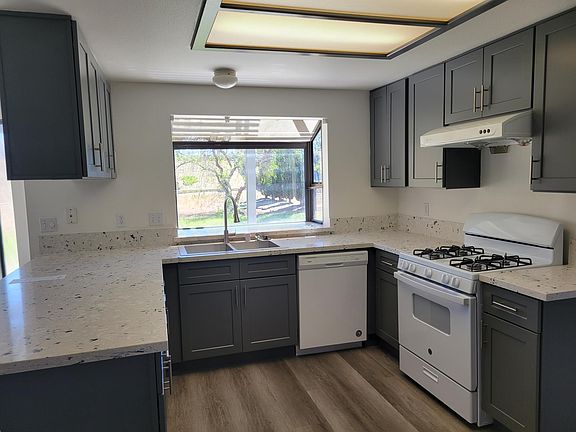 This beautiful home has recently been upgraded with vinyl plank flooring, new carpet, and fresh paint. The kitchen has been upgraded with new cabinets and quartz counters. This home has one bedroom and bath downstairs with a walk-in shower. This bathroom was also upgraded with a new cabinet and quartz counters. The kitchen opens up to the family room with fireplace and has a view of the large backyard. The two upstairs secondary bedrooms have an adjoining jack and jill bathroom, which was also upgraded with new cabinets and quartz counters. The primary bedroom is also upstairs and includes a walk-in closet and an attached bathroom with dual sinks and an upgraded tub/shower enclosure. The gardener is included in the rent.