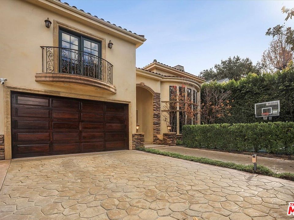 Searching for your own slice of paradise in Sherman Oaks? Here's your opportunity to live a lifestyle many people can only dream of. Ideally set on a picturesque, tree-lined street, a decorative wrought iron fence enhances the curb appeal of this elegant residence. Follow the tile walkway to double wood doors leading to your grand foyer and its stunning chandelier. Sure to impress, the entryway embodies the high level of quality, design, and craftsmanship evident in every room. In the living room to the right, the fireplace catches your eye. It's one of three in the home and highlights an inviting conversation area illuminated by the abundant sun that spills through a dramatic curved wall of windows. Recessed lighting gleams on the wood and travertine tile flooring that flows throughout, along with multiple custom cabinets and shelves. It's a home designed for gracious living and entertaining, with a den/office, a separate formal dining room for hosting dinner parties, and a family room that includes a built-in wet bar for shaking up your favorite cocktails. Imagine the meals the home chef will create, given the luxurious proportions of the gourmet kitchen with its Thermador gas stove and double ovens, center island, walk-in pantry, and beautiful granite countertops. Natural light from large windows fills the entire area, making it a pleasing environment in which to work. Your home has one bedroom downstairs and four upstairs, all of which are well-sized with en-suite bathrooms. Retire to the primary retreat and relax by the fireplace or enjoy a nightcap on the balcony overlooking the pool. Your opulent bath is nothing short of spectacular, offering you a soothing jetted tub and a dramatic glass-enclosed rainfall shower. Dual walk-in closets are an absolute dream for the fashion lover. When you want to step out for fresh air, have an outdoor celebration, or just enjoy the many perks of Southern California living, an abundance of options awaits you and your guests in the home's expansive backyard. Sunbathe on the deck surrounding your shimmering pool and refreshing hot tub. Whip up a sumptuous BBQ in the built-in kitchen, dine al fresco, or unwind in the shade on the covered patio. When you're up for some exercise, a basketball sport court awaits, secluded by mature foliage. Among the many other features of this very desirable residence are a custom stamped concrete driveway with an automatic gate, a finished 2-car garage with plenty of cabinets, and a laundry room with a sink. For your convenience, the desirable location puts you near shopping, restaurants, and parks. Come take a tour of this gem before it's gone for good!