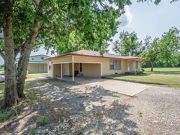 Great property located on almost 6 acres! Home is 1344 sq ft with large living area with freestanding fireplace open to kitchen. It has 2 bedrooms and 1 full bath. HVAC replaced in 2016, new carpet,laminate hardwood floors. Kitchen has gas cooktop and breakfast bar. 50x80 Workshop with a large 14x50 porch, four 15ft doors on the sides and 12 ft door in front and has electric and plumbing. The property is full fenced and easy to cross fence. Don't miss your opportunity for this dream property