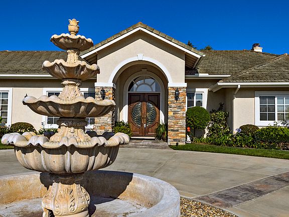 Please call Listing Agent Patrick Marelly 760-473-0000. Private gated estate home, nestled high above the quiet road. Enjoy the wonderful panoramic views & cool ocean breezes in the seclusion of your own home. Gourmet kitchen with plentiful counter space, double ovens & beautiful stone. Elegant formal dining room with wainscoting, crown molding and elegant chandelier. Spacious master with stone fireplace and large walk-in closet. Enjoy the tranquil & relaxing atmosphere of 2 beautifully landscaped acres with lush plants, citrus trees and koi pond.