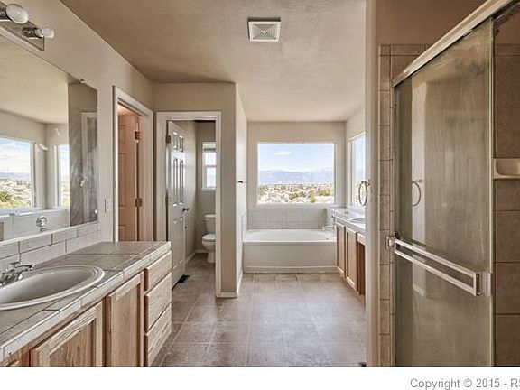 Awesome Mt. Views from this Lovely 6 Bdrm 4 Bath home * Bright updated kitchen w/Island * Opens to Eat-in area & Fam Rm w/ Gas log Frpl * Large LR/DR combo* Spacious Master w/Walk-in Cl & 5 Pc Master Bth *Fabulous Mt. Views from rear deck & entire back of home! 3 Nice size secondary Bdrms up with WI Closets * Full Hall bath * 2 Bdrms & Fam Rm in Full Finished W/O Basement w/Full Bath * Very Close to Park * AC * Great location! Close to Shopping, Schools & Peterson AFB! Move in Ready! Carpet professionally cleaned! Lovely 6 Bdrm 4 Bath home w/Awesome Mt. Views! Bright updated kitchen w/Island, Opens to Eat-in area & Family Rm w/ Gas Log Frpl * Large Living Rm/Dining Rm combo* Spacious Master w/Walk-in Cl & 5 Pc Master Bth *Fabulous Mt. Views from entire rear of home & off deck! 3 very nice size Bdrms up with WI Closets and full hall bath * 2 Bdrms & Family Rm in Full Finished W/O basement w/Full Bath *Central Air Conditioning * Nice park very close by * Great location! Close to Shopping, Schools & Peterson AFB! Move in Ready! Over-Sized 2 Car Garage * Carpet professionally cleaned!