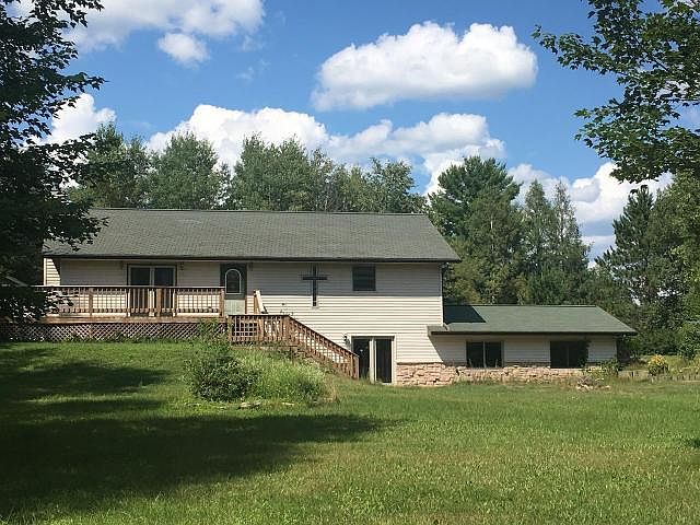 Sprawling country home in a fantastic location a few miles outside of Rhinelander. The home offers plenty of space in a quiet setting and is close to all of Rhinelander's conveniences. The open concept great room has vaulted ceilings, an abundance of windows, and a cultured stone fireplace as its focal point. Main floor Master Suite has a corner jetted tub, shower, and double vanity. Additional features include a huge wrap around deck overlooking the 1.5 acre lot, a 2 car garage & shed, a pond, and generous lower level addition with abundant living space. This home needs paint, floor coverings, and a handyman's skill, but offers a tremendous amount of space and potential for the busy family with a desire for serene country living. Home is being sold AS IS.
