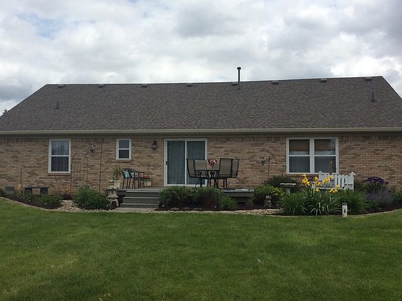 Custom built ranch in desirable New Palestine. Great room has vaulted ceilings with gas log fireplace. Split bedroom floor plan with beautiful master bedroom and huge walk-in closet. Eat in kitchen is complete with newer stainless steel appliances. Laundry room is off garage . All new windows are less than 3 years old. Roof, guttering and insulated garage door is less than 4 years old.