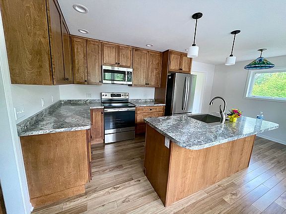 Come home to beautiful Chassell, Michigan! Recently renovated 3BR/2BA ranch home is a must see. Bathed in natural light with picturesque views of Portage Lake’s Half Moon Beach. Quality craftsmanship in your custom kitchen and baths with newly installed Bertch birch cabinets and luxury laminate floors. New electrical, plumbing, gutters, and appliances. Well thought out floor plan as eat-in kitchen flows into large living area. Three bright bedrooms with nice sized closets. Two of the bedrooms also include extra built-in storage and shelving. Classy barn doors enclose your brand new washer, dryer, and whole house water filter. Hall bath offers a new large walk-in shower. Attic storage with pull down stairs. Detached 2-car garage with plenty of space for additional storage or workshop. Parklike setting only steps away from multi-use DNR lakeside trail. Hike or bike this trail all the way to Houghton’s Kestner Waterfront Park. Call to see this gem today!