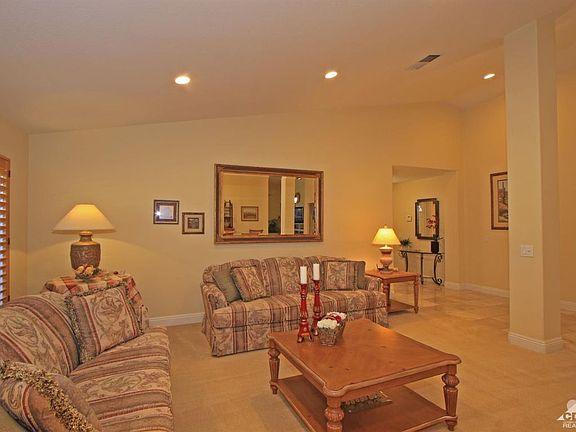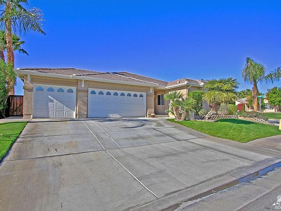 This IMMACULATE 3BR/3BA home in Bermuda Dunes must be seen to be appreciated! Living room, Master Suite and kitchen are freshly and professionally painted. Spacious and open kitchen features beautifully finished granite counters and an incredible amount of cabinet space for storage. Kitchen opens into casual dining and family room for great entertaining space. And all of this is brilliantly enhanced with travertine tile floors and vaulted ceiling. The huge Master Suite boasts two large walk in closets with double mirrored doors, natural stone walk-in shower and granite counter double sink. 3 car garage is completely finished with epoxy coated floor, abundant built in storage and a separate A/C unit. The well landscaped back yard offers privacy and ample room for a pool. All this AND it is powered by Imperial Irrigation for substantially lower energy bills. Make your appointment to see this gorgeous home today.