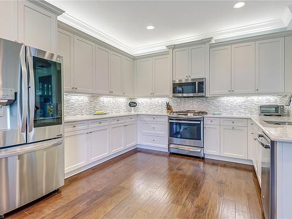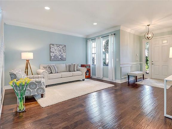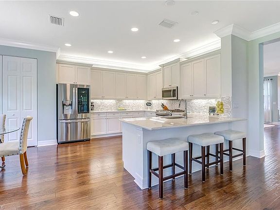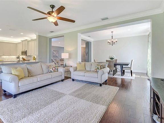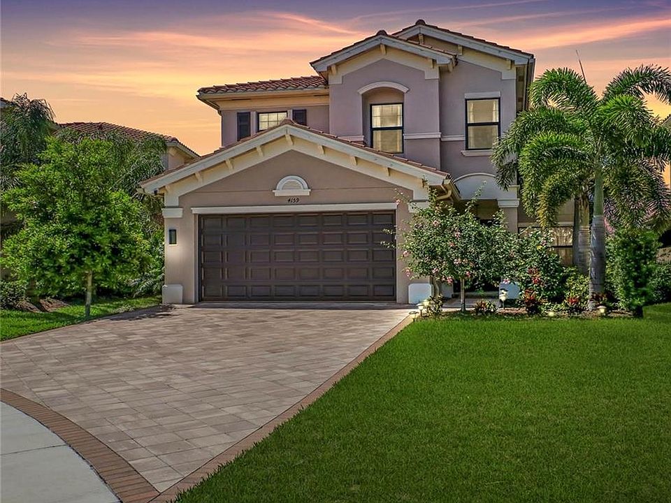 Wonderful opportunity to purchase a highly customized Conrad in desirable Stonecreek! This stunning home has a long driveway and is ideally located on an oversize cul-de-sac lot near the clubhouse. Surrounded by lush, colorful, professional landscaping, this impeccable home shows like a model inside and out showcasing beautiful hardwood floors, rich moldings, and custom window treatments & trim throughout. The dream gourmet kitchen is light, bright and spacious with quartz counters, high-end cabinets, stainless appliances, GAS range, and new glass front "instaview" refrigerator. Desirable open floor plan with the kitchen opening to a family room that's perfect for comfortable family living or easy entertaining. Southwest exposure ensures a light and bright interior. Second floor features a versatile bonus room and a luxurious master bath with carrara marble counters. "A" rated schools and countless resort amenities include resort, lap & wading pools, har-tru tennis courts, basketball courts, fitness center, tot lot, social activities, beach volleyball and more. Upscale resort living near I75, beaches & within 2 miles of a new shopping center with a supermarket, shops and dining!