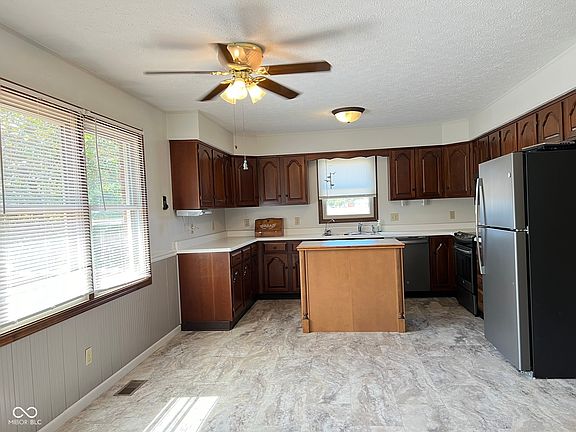 Looking for a multiple barn setup..Agribusiness, landscaping company, mechanics....Just under 6000 sq.ft. of finished barn, lean to, office, bonus room, apartment, loft, & workshops. Three 14,12 & 10 foot overhead doors. Both barn and lean to have a connecting overhead door too. Complete with 5..45 acres of ground; a little over 3 of that is being farmed. A custom brick ranch home and wide open spaces are included here and just 5 minutes from the I-74/421 interstate. Located between Greensburg and Shelbyville in the Waldron school district.