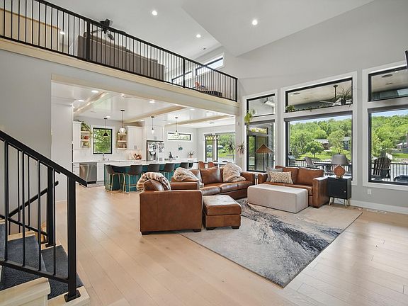 Welcome to a masterpiece of modern luxury—where every detail has been crafted for comfort, elegance, and unforgettable living. This stunning 4-bedroom, 4-bathroom home features a massive 3.5-car garage (1,260 sq ft) with in floor heat, hot/cold faucet in utility sink, and built-in sound system—perfect for the enthusiast. Step inside to a show-stopping kitchen with gleaming quartz countertops, premium stainless steel appliances, a grand center island, and rich ¾” engineered wood flooring. A walk-in pantry with a quartz workspace and room for an extra fridge takes functionality to the next level. The great room stuns with soaring 18-ft ceilings and a fireplace, while the main-level master suite is pure indulgence—complete with soaking tub, custom tiled shower, expansive walk-in closet with built-ins, and direct access to the laundry. Upstairs, find a spacious rec loft, two bedrooms with walk-in closets and Jack & Jill bath, plus a second laundry. The lower level transforms into your personal retreat: a full rec room, quartz wet bar, additional bedroom and bath, private office with built-ins, and a dedicated 696 sq ft gym. Outside, entertain on the covered deck with heaters, sunshades, and spiral stairs leading to the patio and your 26’x14’ saltwater pool—heated, cooled, and covered automatically. Sand beach for your enjoyment, and irrigation system. Bonus B lot with shed, power, internet, and gravel parking. This is luxury without compromise.