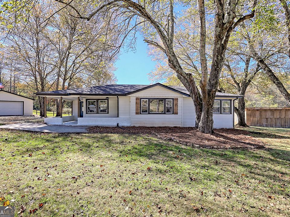 Country rustic home is situated on 1.35 unrestricted acres in Union County, Georgia. This newly updated residence features three bedrooms and two bathrooms. Upon entering, you'll find an open floor plan, complete with spacious living and dining areas-perfect for entertaining or family gatherings. The designer kitchen is equipped with new stainless-steel Whirlpool appliances and new luxury vinyl plank (LVP) flooring. Enjoy a lovely view of Lowe Creek flowing alongside this incredible property from the kitchen window. A two-car detached garage provides ample storage or could serve as a workshop. Additionally, the barn includes horse stalls and offers various possibilities, leading to a small pasture area that could also be utilized as a garden. This property borders the United States Forest Service land and is conveniently located near Lake Nottley. The home boasts many upgrades, including a new roof, and LVP flooring throughout. Bedrooms are carpeted, and the entire interior and exterior have been freshly painted. Don't miss the opportunity to see this wonderful home in Blairsville, Georgia!