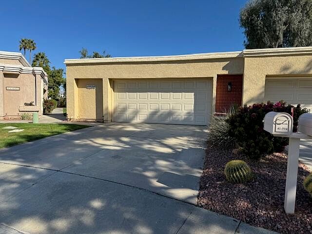 This beautiful two bedroom, two bath condo is situated in the upscale well maintained gated community of Casablanca in Palm Desert This home has been updated, with remodeled bathrooms, new flooring, paint, electrical panel, leased solar, plantation shutters and much more. The family room features a brick fireplace, plenty of windows and light, high ceilings, sliding doors to private enclosed patio. Spacious kitchen includes an eat in breakfast area + lushly landscaped greenbelt views. Large primary bedroom with views and slider access to patio. The primary bathroom was remodeled tastefully with a modern design along with dual vanities, over sized shower and gorgeous fixtures. Split floor plan with guest bedroom and updated/remodeled bathroom. 2 car garage with additional storage space and or golf cart, pre wired for your tesla charger and laundry. Close to shopping, restaurants, retail and an abundance of golf options such as Desert Willow Golf Resort and Marriott Desert Springs Resort. HOA includes cable, internet, building maintenance, roof, landscaping, pools/spas, gates, tennis and pickleball. Don't miss out of the opportunity to own this home today!