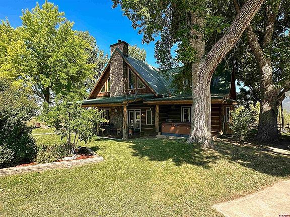 Paradise found at the base of the stunning West Elk wilderness! This beautiful log home sits on 16+ lush acres of irrigated grass and mature trees. Take in the stunning views from every direction, but particularly off of the front of the home, staring straight up at Mt. Lamborn and Mt. Landsend. The home welcomes you in and makes your feel like you've finally arrived. Towering ceilings and large windows give light to the cozy wood tones throughout. The kitchen features beautiful solid wood cabinetry, high end appliances, and ample storage and counter space. It is open to the dining nook and great room, making it the heart of the home. Anchoring this space is the wood burning fireplace and mantle. The main-level primary suite is complete with private deck access, a hot tub with the most incredible view, a giant walk-in closet, and a luxe en-suite bath (complete with bidet!) This suite also has a cozy Quadra-Fire gas stove. Throughout the home you will find dimmable lighting and in-floor radiant heat. There is a dedicated laundry/mud room, a large pantry, and another bathroom also on the main level. The second loft level features a sprawling second living space with access out to a balcony. There is a second primary suite on this level, complete with a jetted tub perfect for a soak while looking out over the falling Colorado snow. Outdoors this property is a dream- ample irrigation water provides lush fields, a gorgeous yard, and happy healthy trees (and fruit trees) all season long. There is a robust underground irrigation system that delivers irrigation water to multiple risers and spigots throughout the yard and grounds. The hay fields are irrigated via gated pipe. There is a historic hay barn, and TWO additional large garage/shops on site. The first is an oversized extended tandem garage (28x40) and features an oil change pit. The second is a 3 bay heated shop/garage combination that is fully insulated and has water, power, heat and more (40'x50'). There are numerous opportunities for these spaces. Sit back and enjoy the atmosphere from either the covered front patio or the sunny back deck. The property is fully fenced and cross fenced with a perfect space up front to keep your horses close by! This property embraces the true beauty of the North Fork Valley, and will make a spectacular home for the next owner. Don't miss out on all this place has to offer!
