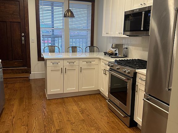 Lovely, sunny, rehabbed apartment located in historic, downtown Beloit is available now. Pristine home features private entrance, chef's kitchen, gleaming hardwood floors, high ceilings and deck off kitchen which is a perfect vantage point to watch beautiful WI sunsets. Steps to the Rock River, and Beloit College, parks and bike paths, this is an opportunity to live close to all the activitirities, restaurants and events happening in vibrant, downtown Beloit. Apartment includes new, stainless steel, Kitchen Aid appliances, dishwasher, quartz kitchen counters and backsplash, in-unit washer/dryer, central air conditioning, finished closets and new plantation blinds on all windows. A small fitness room and additional storage locker are included in the rent. Feel free to call , or text, with any questions.... Tenant pays for electric and gas, owner pays water, garbage and sewer, tenant pays $25 each month with rent for utilities