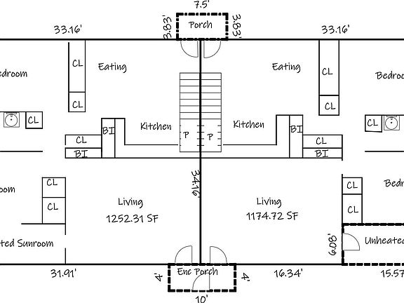 Duplex conveniently located within walking distance to downtown Hickory/Union Square. NC (Neighborhood Central) Zoning which allows for residential, office, retail, daycare, medical uses, and more. Front and back entrances with ample space for parking area. Two unit dwelling, each with 2 bedrooms and 1 full bath. Each unit has a sunroom, and hardwood under carpeting. Live in one unit and rent out the other, or use both as rentals or other commercial purposes. Great income potential for buyer of this property.