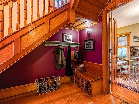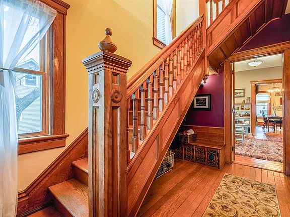 Amazing 4 bdrm, 2 bath restored home that showcases the best of both worlds - old world charm & modern updates. The charming front porch welcomes you inside to a spacious foyer & open solid wood staircase. Main floor boasts a spacious living room, den and primary bedroom suite and a Dining room that has character with a brick wall & wood stove. Spacious kitchen with a breakfast bar & pantry. Large bedrooms and plenty of storage. You will fall in love with the outdoor landscaping, brick patio and pond, it feels like you are in a park! Chicken coop is included! Garage has a garden shed attached to it that could be used for many things!
