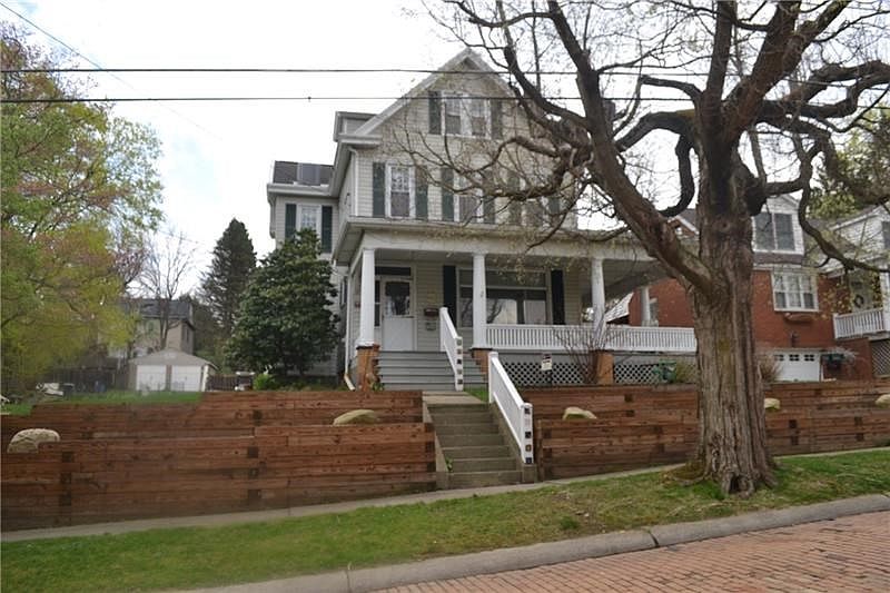 Enjoy the wrap around porch on this charming over 3 story home featuring three spacious bedrooms, two full and one half baths, formal living room with woodburning insert in fireplace with raised hearth, master suite with plenty of closet space, master bath with two sink vanity, third bedroom on 3rd floor featuring additional storage areas, kitchen with gas cooktop, center island breakfast bar, first floor laundry equipped with washer, dryer and freezer, formal dining room with decorator fireplace, family room with access to deck and landscaped double lot. There are two separate detached garages, one is small for equipment, bikes, motorcycles, etc and the other is two car garage.
