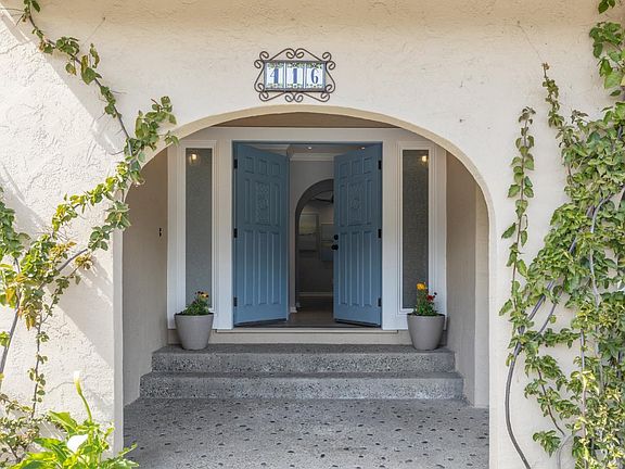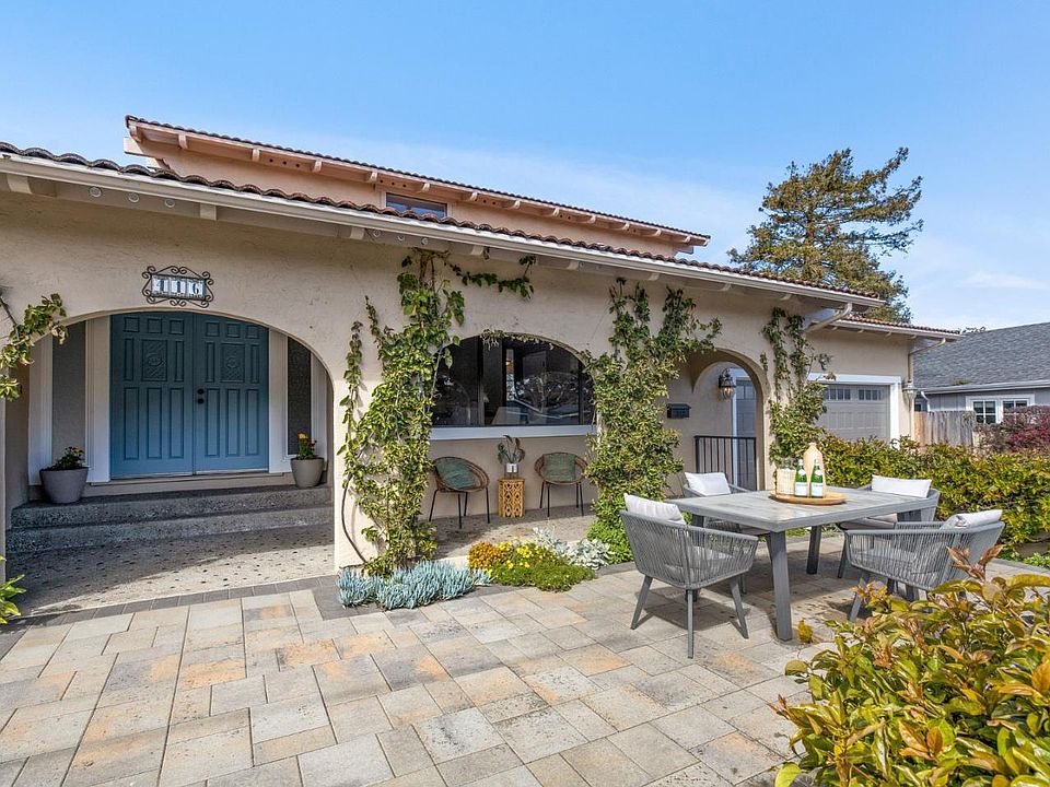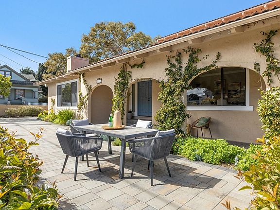 Just seven blocks to the beautiful Monterey Bay, this Pacific Grove Mediterranean coastal home is comprised of more than 2,200+ sq ft. The 1,662 sq ft ground-level features a comfortable living room made cozy by the grand fireplace, a formal dining room, and a recently updated kitchen with sit-up counter that joins with the family room. Additionally, the main level has a large ensuite bedroom with sliding doors to the private paver-covered backyard. Upstairs with a peak of the ocean, is an oversized ensuite bedroom with two closets and enough space for a sitting area spread across 581 sq ft (once two bedrooms, made into one). A 500+ sq ft two-car garage with JuiceBox EV charger, laundry area and workspace with a sliding door allows for natural light. Extending the house is the east-facing patio that warms up on sunny mornings. A large home ready to move into, it's an easy seven block stroll to Robert Down School and just a few more to restaurants and shopping of downtown Pacific Grove.