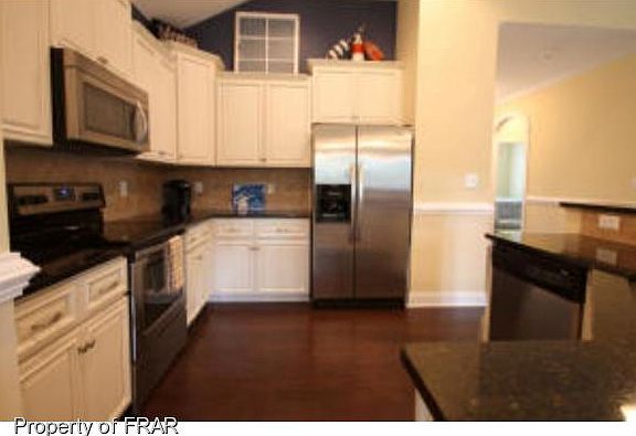 Craftsman style w/3 bdrms + bonus rm. Vaulted ceilings, rich colored hardwood floors, crown molding, chair railing. Well designed kitchen has ss appliances, granite counters, birch cabinets, pantry. Hardiplank siding, vinyl shutters are low maintenance. Screened porch. Located down from the 16th hole of previous Carolina golf course. Vast gorgeous views, lots of green & privacy. Seller added fencing & fabulous landscaping. Close to grocery stores, schools, parks, great proximity to Ft. Bragg.