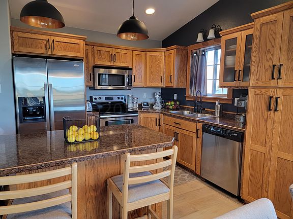 Sunny Southern Exposure in this Wonderful Open Plan Home with Center Island Kitchen, Cozy Gas Fireplace in the Living Room, Solid Oak Doors and Mission style Trim, Built in Bar area in the lower level Family Room, Large Bedrooms, Two Tier Deck, Fully Fenced yard, Cement Curb Edge Landscaping, Finshed and Heated Garage with Electric Car Charging Port. This is it!!