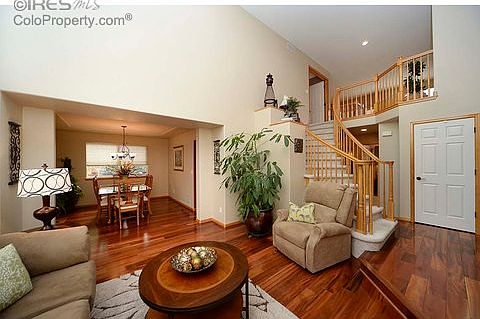 Vaulted ceilings, hardwood floors, living room, dining area, study w/custom built-ins on main floor. Granite counters, backsplash, 42" soft close cabs w/rollout drawers, upgraded ss appliances w/convection oven, warmer drawer & gas cooktop, pantry & breakfast bar in kitchen! Loft, master w/fan, walk in closet & private 5pc bath & 2 add'l bedrooms share a full bath w/dual sinks upstairs. Paver walkway w/front patio and lrg backyard w/redwood deck! Near Reliance Park, trails, I-25!