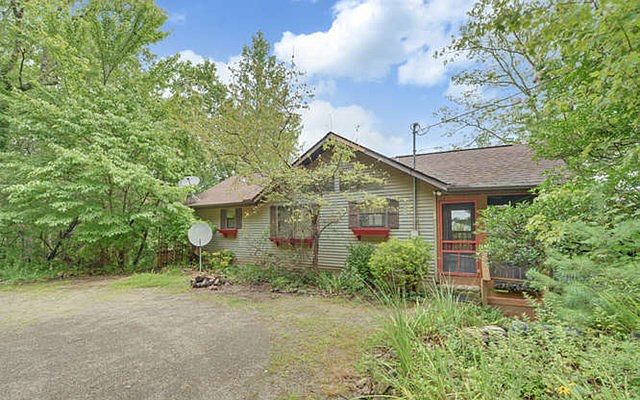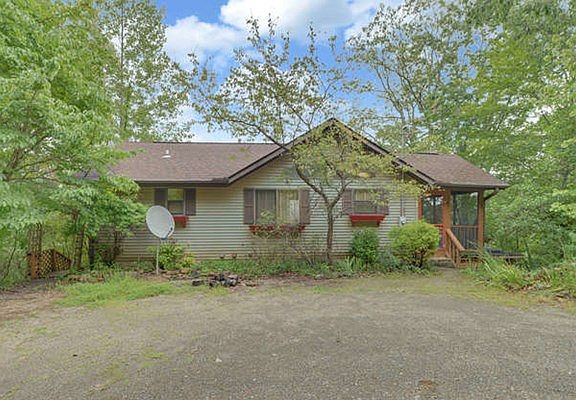 Spectacular ridge top mountain view & end of the road privacy. Home offers bedroom & bath on each level,  wood burning FP in great room & free standing wood stove in the family room. upper & lower porches, sun porch off master.