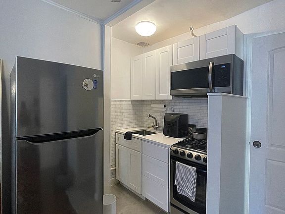 **Message Us For Video & Virtual Tour** Welcome to your future home, a modern apartment located on the third floor of a beautiful colonial house. This recently remodeled residence offers a great space. As you walk up the stairs and enter through your private entrance, you will be welcomed by a tiled foyer. The open concept living and kitchen area is spacious and can comfortably accommodate a living area. The kitchen boasts stainless steel appliances, including a microwave, sleek white cabinets, and a quartz countertop. There is a large walk-in closet that has a window, could serve as a home study. Large, updated windows allow plenty of natural light and fresh air to fill the house. The freshly repainted unit, hardwood flooring and crown moldings add a touch of elegance throughout. The generous king-sized bedroom comes with a large walk-in closet, providing ample space for a king-sized bed and additional furniture. The bathroom has been updated with new tiles, a new vanity featuring a quartz countertop, and windows to allow natural light. The neighborhood of Kensington has seen a significant rise in high-quality restaurants, takeouts, bars, and nightlife over the years. This home is conveniently located and easily accessible by public transportation, including F, G, Q, B trains, and various bus lines, including express options to Manhattan. Supermarkets, grocery stores, Walgreens, and laundromats are all located nearby. P.S Tenant may be open to selling couch & bed. Smoking allowed:No