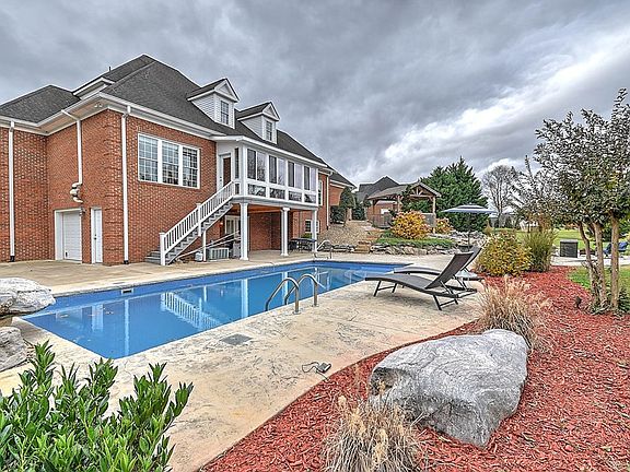 A true show place in The Meadows whose outdoor amenities almost outshine its interior. Great main floor layout with lovely master suite overlooking the pool, stunning entry with views all the way to the vaulted ceiling great room. A lovely office is to the right of the entry and a gorgeous formal dining area is to the left. The kitchen/breakfast room combo has beautiful custom edged granite counter tops, cherry cabinets, stainless appliances and both a butler's pantry and food pantry just adjacent. There is a bright finished sunroom off the great room that overlooks the sparking pool as well. The 2nd floor has a loft landing area that leads to a princess suite with private bathroom and an enormous walk-in closet, a guest room, hall bath and bonus room. All bedrooms have walk-in closets. The basement features an in-law/adult child/guest suite finished with a huge recreation room/den, 2nd kitchen, guest room and full bath. it has a private entrance and drive under garage and garage storage just off the recreation room/ There are also french doors to the back patio/outdoor kitchen/pool area from the basement finished space. Now let's talk outdoor amenities!!! There is a covered hot tub area on the main level just behind the double attached garage which has a custom rock waterfall/fountain feature that cascades down to the outdoor dining and fire pit areas on the custom river rock patio. And to top this off, all of these areas flow to the adjacent in-ground pool which has it's own rock waterfall fountain feature. Such a peaceful oasis at the private back of this gorgeous home and then to top that off, there are beautiful mountain views off the front! If you happen to have school-age children, you should know this home is located in the award-winning Greeneville City Schools district. The sellers are offering a generous HOME WARRANTY and there are lifetime transferrable warranties on both the pool and the windows.