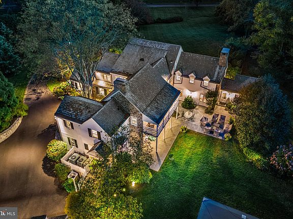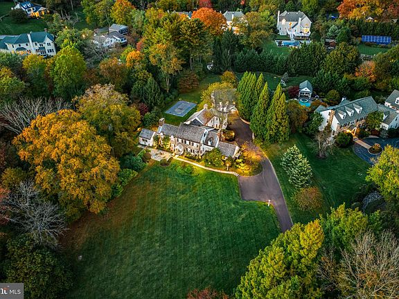 This property is 4 acres, 2 separately deeded lots. The home sits on 2.5 acres and the lot next to it is 1.5 acres. Drive down one of Bryn Mawr’s most desirable tree-lined streets and turn into the long driveway lined with lamp poles and specimen plantings. The stately stone manor home with white siding, black shutters and slate patios front and rear say you’ve arrived. This fully updated classic Pennsylvania farmhouse sits on two fenced-in parcels totaling more than 4 acres in the heart of the Main Line, in the coveted Radnor School District. This 6000 + Okie farmhouse, a Colonial Revival main home, was built in 1942 and redesigned for modern living in 2014 by architect Ann Ledger of Wayne. It (main house)features 5 bedrooms, 5 full and 2 half baths on 2.5 levels, plus a finished lower-level bonus room and a 1-bedroom, 1 bath studio apartment/guest house above the detached garage. Inside you’re surrounded by rich architectural features from past and present—from arched doorways, Dutch doors with rustic wrought-iron hardware, beautiful hardwood floors and 3 fireplaces, to built-in lockers in the mudroom and bookshelves in both offices, marble bathrooms with seamless shower doors and walk-in closets everywhere. Throughout, generous windows offer great views of the property from every angle and fill the home with light. On the main level, the foyer opens to stairwells to the upper level and finished lower level and features a formal powder room. Both the living room and great room feature fireplaces. French doors in the living room open to a slate patio. The equally spacious great room has split doors to the back patio and the mudroom addition and opens to the kitchen and breakfast room as well. A family room provides additional informal gathering space and a 2nd stairwell to the upstairs hallway. Two offices—one off the kitchen and the other opening to the backyard—feature built-ins in beautiful shades. A butler’s pantry—fully equipped with a beverage refrigerator, dishwasher and icemaker—services both the dining room and the center-island kitchen—a chef’s delight with Thermador 6-burner stove with griddle and range hood Thermador double wall oven and warming drawer, a farmhouse sink and other high-end stainless steel appliances. Featuring white inset cabinets, a subway tile backsplash and white beadboard ceiling, this cheery space opens to a large breakfast room overlooking the patios and pool. There’s also a door to the driveway area for family members and “backdoor friends.” On the first upper level, the primary bedroom features a large covered balcony with a gorgeous view of the pool and backyard, as well as two walk-in closets with built-in storage and a luxurious private bath with radiant-heated tile floors, double sinks and high vaulted ceilings—part of the 2014 addition. Three large additional bedrooms with en suite baths were also part of the renovation, and a laundry room with built-in cabinets and countertops adds convenience. On the second upper level, a large room and full bath could be used as a playroom or additional bedroom. On the lower level, a finished bonus room with fireplace provides flexible space to suit your family’s style. The main-level mudroom has tile floors, an informal powder room and walk-in closet, along with built-in cubbies, and a bar with refrigerator to serve the pool area. Picture yourself sitting by the in-ground pool/spa listening to the soothing sound of the Kirk’s Run creek, which runs alongside the property. Off the pool area, a detached two-car garage includes a one-bedroom studio apartment with full bath and kitchenette for your guests’ convenience and your privacy. Gorgeous inside and out, this classic residence offers the best of town and country living just three miles from both the Villanova and Bryn Mawr train stations and within walking distance of the prestigious Agnes Irwin School.
