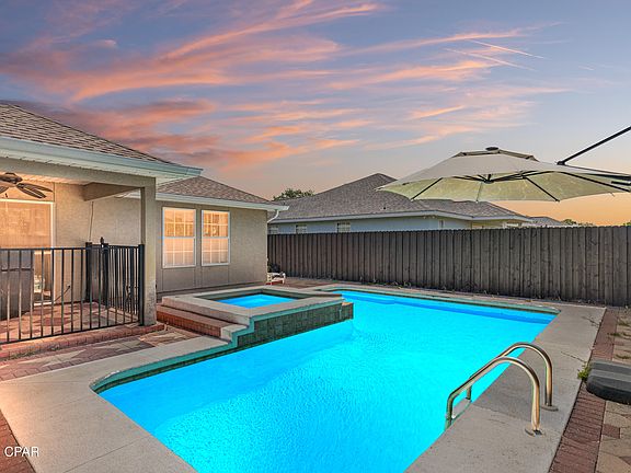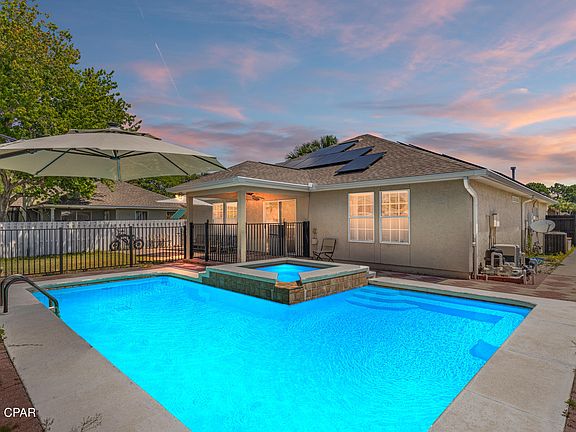 Welcome to your Private Paradise—an exquisitely updated 3-bedroom, 2-bathroom one-level home that combines modern luxury with effortless comfort. Featuring a spacious double garage, a sparkling heated in-ground pool, a soothing hot tub, and a brand-new solar power system with a full-home generator, this property is designed for year-round enjoyment and peace of mind. Step into your own private backyard oasis where the pool easily heats to over 100°F—even in winter—perfect for relaxing soaks or fun-filled weekends. The fully fenced yard opens directly to the scenic Patronis Walking Path, turning it into your own extended playground. Enjoy morning walks with the kids to school (skip the carpool lines!), play catch or kickball in the open green space, or take leisurely strolls with the dog—this home makes outdoor living effortless. Inside, you'll love the beautifully renovated kitchen, a true centerpiece featuring quartz countertops, stainless steel appliances, a double oven, elegant tile backsplash, custom soft-close cabinets and drawers, and high-end luxury vinyl plank flooring that flows seamlessly throughout the home. Energy efficiency meets peace of mind with the newly installed solar panels and a whole-house generator, offering year-round savings and uninterrupted comfort no matter the season. With its perfect blend of style, function, and location, this home isn't just a place to live—it's a lifestyle upgrade. Come experience it for yourself before it's gone!