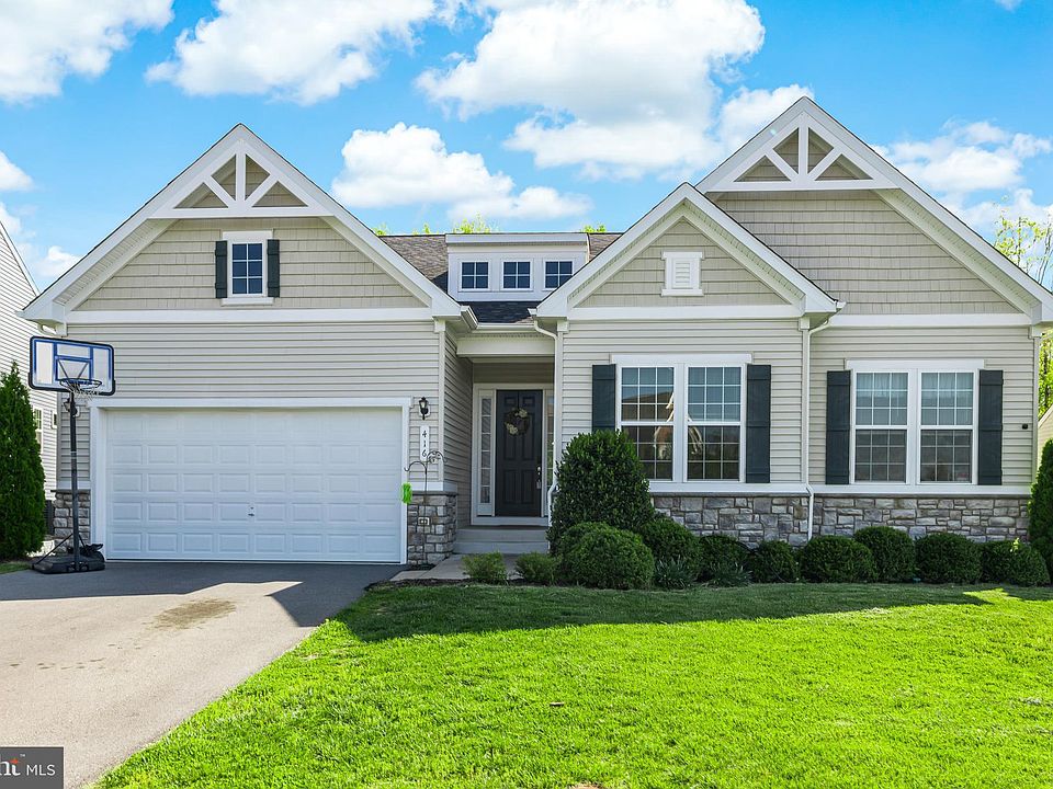 Welcome to this spacious home offering main level living with custom paint & custom lighting throughout & over 4,100 square feet of living space in the Twin Lakes Overlook community. The open concept living area features hardwood floors, upgraded lighting & ample space for both living & entertaining. Gourmet kitchen featuring white cabinetry with upgraded hardware, stainless steel appliances, breakfast bar, stainless steel appliances, upgraded countertops & incredible walk-in pantry. Dining room with cathedral ceiling & wall of windows providing tons of light. Spacious primary suite features upgraded bath & walk-in closet. The main level features three additional bedrooms, upgraded second full bath & laundry room! The finished lower level features huge recreation room, bar area, game area, playroom, 5th bedroom/office, exercise room & storage! A rear patio overlooking the fenced rear yard & trees offers additional living & entertaining space.