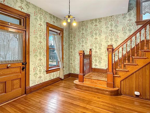 Stunning 2 1/2 story home built in 1905 in beautiful downtown Washington MO. Full of Old World Charm from 10 ft ceiling to wood floors and pocket doors. This Beautiful home boasts an inviting entry foyer with a formal wood staircase and a Back staircase. Cozy kitchen with butler's pantry, pantry & access to rear deck. Large Living and Dining rooms on the main level and a full bath on the main level. Upstairs you will find 4 bedrooms and one full bath. The office or 3rd bedroom has door to balcony. The 3rd floor is currently for storage and has a cedar-lined closet. Lots of potential! Many updates include many Windows replaced, a New Roof in 2020, & Zoned Heating and Cooling, 3 bedrooms up have had walls redone and 2 with new carpet, 2 with wood, refinished dining room floor, and new sump pump. Has a nice yard with Raised Beds for the gardener and a detached 2-car garage. This home is a must-see so you can enjoy downtown living. Motivated seller.
