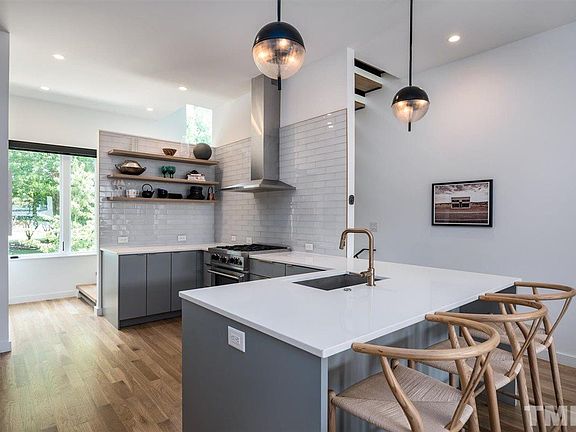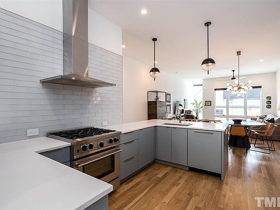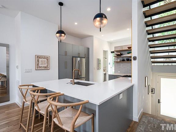 Modern opportunity in amazing downtown location. Award winning layout designed by Clearscapes Architecture features huge lightwells bathing the home in natural light and stunning views of skyline & greenway. Also featuring floating stairs, chefs kitchen w/ restaurant quality Bluestar gas range/hood, white oak flooring, quartz countertops, 3rd floor balcony & skylights, Energy Star certified w/ fresh air ventilation, custom modern blinds, Tesla Charger in garage and all within steps to Transfer food hall.