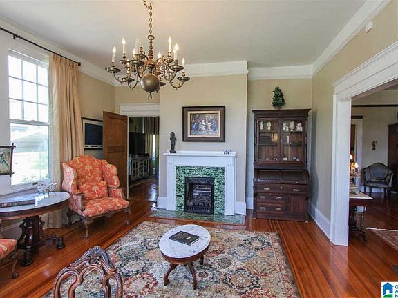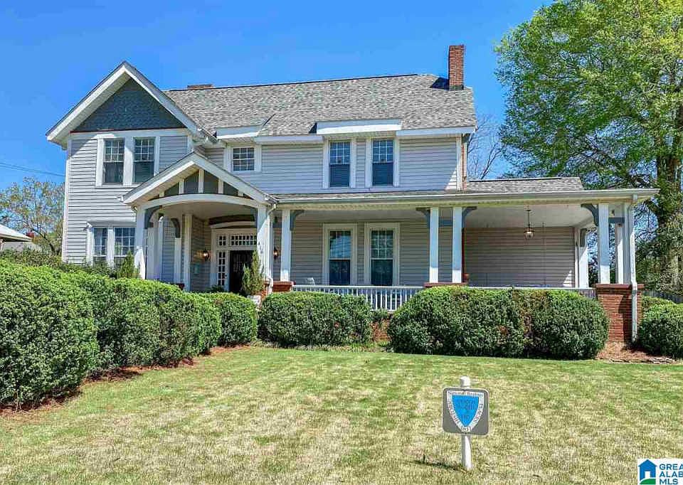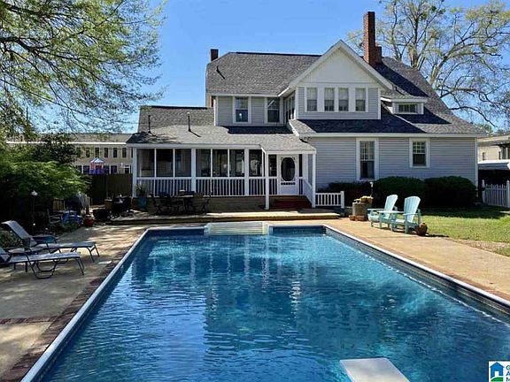 Charming 2 story home in the Historic Silk Stocking District of Talladega! This 4BR 3BA home was built in 1915 and is overflowing with character. The huge wrap around front porch is a welcoming outdoor space made for rocking & relaxing, and this home's design features tons of character with 5 vintage fireplaces, decorative corbels, high ceilings, mature hardwoods, tall windows, & more! Large Formal Dining Room connects to the Breakfast Nook & spacious Kitchen with granite counter, subway tiled backsplash, breakfast bar & butler's pantry. The front Parlor is a fantastic formal entertaining space, and the Den is accented by a bay window & makes for a great for a TV/play room. The large sun room is located just off of the Kitchen and leads onto an awesome screened in back porch, which overlooks the large deck and the glistening in-ground swimming pool and Koi pond with fountain, which soothes you with the gentle sounds of flowing waters. Two Master Suites - one on each level. Call today!