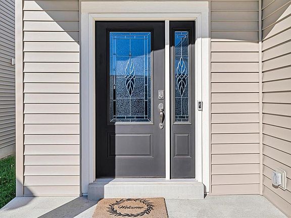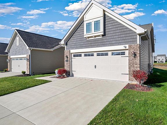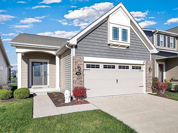 Meet Mr. Copperfield! This stud is a ranch with everything included! That's right, ground maintenance, lawn, & snow removal all for $100/mo. He's situated on a premium lot backing to a lake! Enjoy the view from your extended 12'x18' patio w/side vinyl privacy fencing. Upgraded brick/vinyl exterior welcome you thru leaded glass front door into spacious foyer. Engineered wood flooring in foyer & throughout living area. Kitchen features 42" white cabinetry w/hardware, stone tiled back splash, SS appliances, & quartz counter tops. Center island has breakfast bar, under mount sink! Open floor plan w/ soaring 9' ceiling, some 6 ft windows, transom windows, & extra tall sliding door allow lots of natural light! 2 panel white interior doors! Master suite has full bath w/adult height DBL bowl vanity w/drawer stack & cultured marble shower + wlk-in closet! Prairie grilles, carriage style garage doors, irrigation system, & so much more to love. Egress window & bathroom rough-in in lower level.