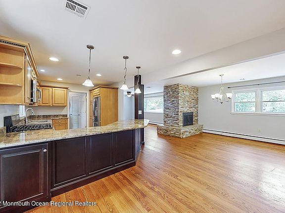 Welcome to 416 Cornell, a spacious, open-floor plan ranch, located in the sought after Lake Riviera section of Brick. Wood flooring, stunning custom kitchen with SS appliances & granite countertops, double sided fireplace, 2 recently remodeled full BA, 3 spacious BR, and a bonus room, await you inside. Outside, a HUGE fenced-in yard is ready for pets, parties, and even a pool. This home checks all the boxes and is a must-see! Seller can accommodate a quick closing. Schedule your showing today and the movers tomorrow!