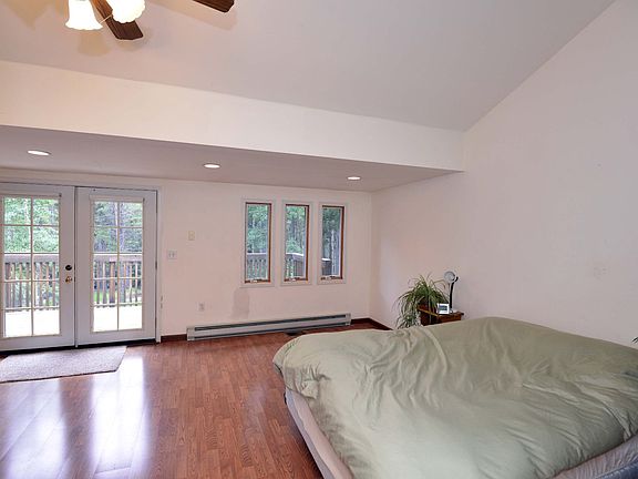 Almost a ranch--master suite can be up or down. Gentle land offers treed vistas. Feels like a newer home with newer kitchen, great room with skylights and wood-burning stove. Enjoy 2 main level bedrooms (one has deck access) and full bath that adjoin a separate family room perfect for entertaining! Upstairs features a huge master with private bath enjoy deck, vaulted ceilings and large closet. Newer windows, roof, interior.