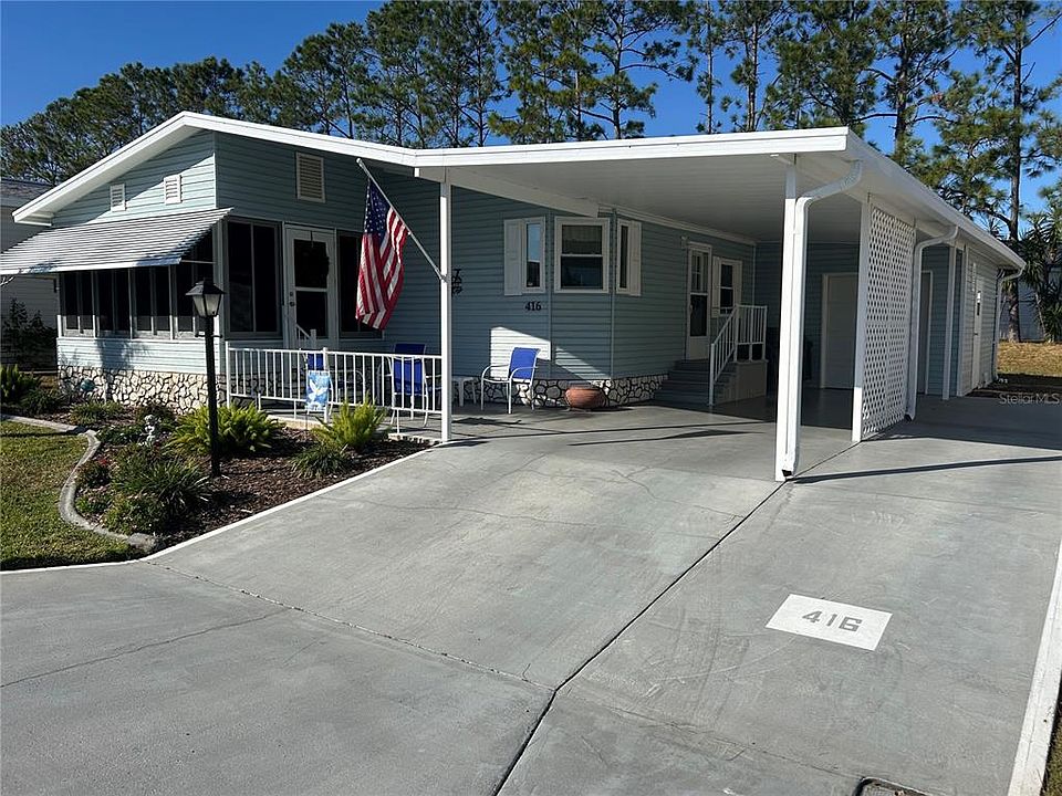 Park East is an age 55+ Resident Owned Cooperative (Co-op) Community. The price of the home includes 1 share of the community ownership valued at $56,400). When you are a shareholder there is no lot rent to pay. The HOA fee for this property is $212.00 every month which includes Lawn Cutting and Edging, DIRECTV STREAM Cable and Frontier Fiber Optic High Speed WIFI. The clubhouse features an exercise room, library, billiard room and large hall with full kitchen (available to rent for private parties) where loads of community activities take place including Bingo half the year on Thursday nights and community holiday parties. Golf carts ok in community to drive on roads. Come live in this well sought after community and also enjoy the beautiful picturesque lakefront with 2 boat docks and picnic area. Well maintained immaculate 2br 2bth double wide manufactured home with a lovely lanai that looks that is insulated and has double pane windows and air condition cooled for that makes for a lovely 3 season room. Central A/C unit 8 years old, windows have been updated throughout home. Golf cart garage/shed with electric garage door opener. Covered carport and patio sitting area to enjoy the beautiful Florida weather. Indoor laundry room. Roof was replaced in 2008, it was recently inspected and owner was told not leaking and it has a few more years of life. Occupancy to be April 1, 2025, owner may be open to closing a little earlier.