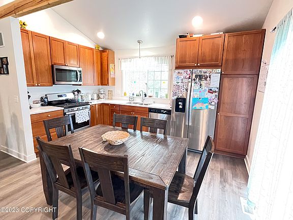 THIS IS IT!!! ADORABLE HARD TO FIND PALMER HOME!!! Walking distance to all the downtown Palmer Fun! 2 bedrooms and 2 full baths. Open area with high vaulted ceiling. Solid surface countertops, energy efficient appliances, on demand water heater. Large crawl space for extra storage. Super easy living w/ very low utility costs. City water and sewer and garbage so no well or septic issues to deal w/.