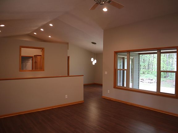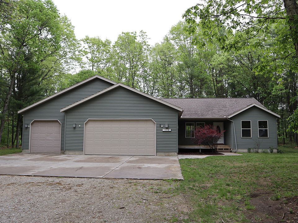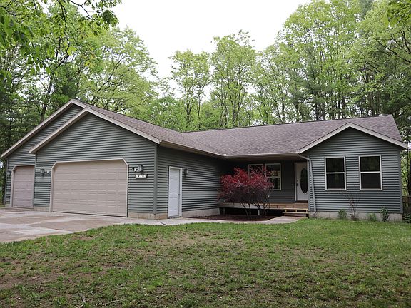 Quiet, wooded 3 acres is the prefect setting for this 3 bedroom, 2.5 bathroom home. The open concept main living area has vaulted ceilings and is ideal for entertaining. The kitchen offers lots of storage and new stainless steel appliances. The dining room has two sliders to the covered back porch & deck. The spacious master suite has a soaking tub and large walk-in closet. The basement is ready for you to finish with an egress window for a bedroom and plumbing in place for a kitchenette and bathroom. The HUGE attached 3 stall garage is extra deep and over 1,000 sq feet. Move-in ready with fresh paint and new flooring. Conveniently located close to stores and restaurants and only a few miles to the highway. Listing agent has ownership interest in the house.