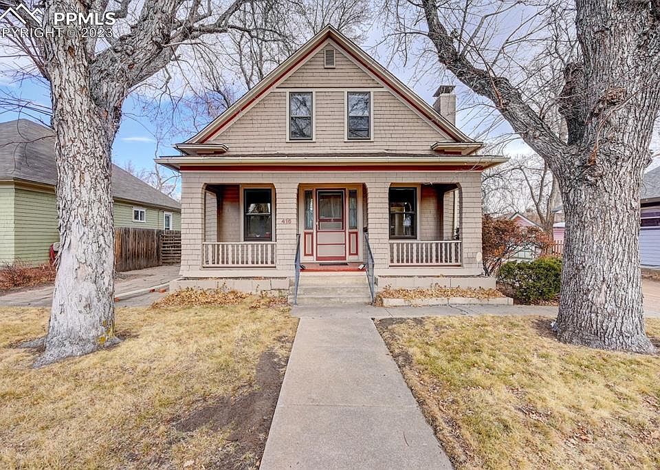 This charming home has been lived in and well cared for by one owner for over 50 years. All systems have been maintained. Now ready for a new owner’s updates. Features include a lovely front porch with ample sitting space, a welcoming foyer, a large first floor living area with wood burning brick fireplace, a dining room that once served as a bedroom could be converted to a bedroom again, and a Bright kitchen with generous pantry and useful butler’s pantry. The second floor offers two bedrooms, a half bath, and walk-in attic storage. The yard, beautifully maintained by Wild Gardens, features a private patio, lush foliage, perennials, and an automatic sprinkler system. A one-car detached garage opens onto the city-maintained alley. Basement offers great storage. Roof replaced in 2014 with GAF ARMOR-Shield 50 year class 4 shingles. Gas-fired hot water heat, serviced annually by Olson Plumbing. Easy access to downtown, Colorado College, Patty Jewett golf course, Interstate 25, and Shooks Run trail. A wonderful place to make your own