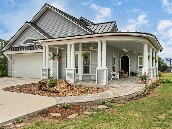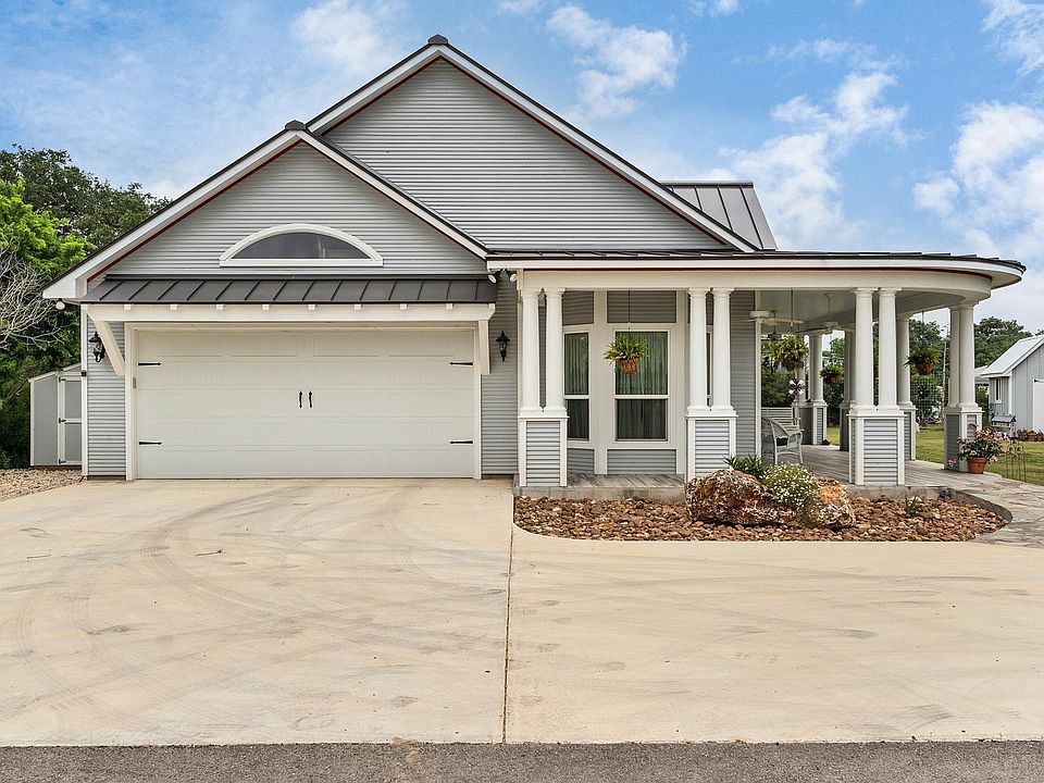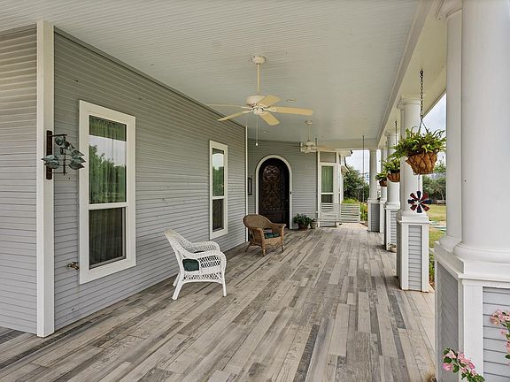 Stunning, single story Victorian style, 2/2 gated home sitting on 1.25 acres. This 2-year-old home, boasts soaring 10' ceilings, 9' kitchen island with downdraft exhaust, 8' single panel shaker doors. Granite countertops compliment the white cabinets in the kitchen & baths. Attention to detail is the theme of this house, including Stained Concrete floors. Oversized picture windows line the rear of the home capturing a water feature. Stained bead board highlights the ceilings above the entrance & kitchen in this open floor plan home. Double stage molding in the living & master with authentic doorknobs throughout. Dedicated electronics closet. Over 1,000 feet of wrap around porch and covered back porch invite you into this unique home, making entertaining a dream! The large arched front door with inset rain glass will make the perfect first impression. Complete, Paved Driveway. When you make this your home, you can sit on the front porch, look at your grape arbor & watch the sunset.